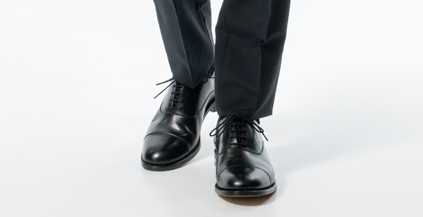 タキシードは夜の準礼装にあたる服。首元には黒のボウタイを締め、ダブルカフのシャツに、カマーバンドという腹巻きみたいなアイテムを巻いて着るのが正式です。足元はオペラパンプスが正式ですが、昨今はストレートチップで代用するのも一般的になっています。