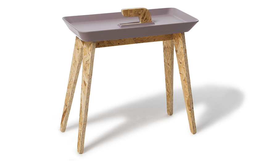 天面がトレイになっているサイドテーブル。普段はソファサイドやベッドサイドに、そして天気のいい日はベランダや庭へ。トレイ面は竹パウダーを配合したメラミンを使用し、環境にも配慮されている。W48×H51×D23cm。1万円。(イデアコ)
