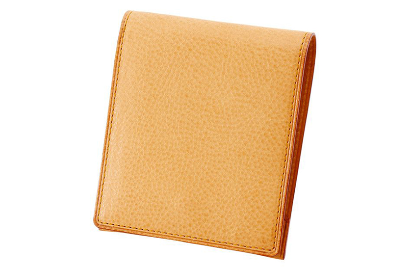 伊・トスカーナの名門バダラッシィ・カルロ社のミネルバボックスは使い込むことでしなやかになり、色&ツヤを深めて大化けするスーパーエイジングレザー。この革を日本の職人が熟練の手技で薄造りした本作は、別売りの「IDコード」をつないで首提げ使いが可能。馬蹄形小銭入れのように、小銭をトレーまでスライドさせて取り出す構造もユニークだ。