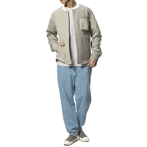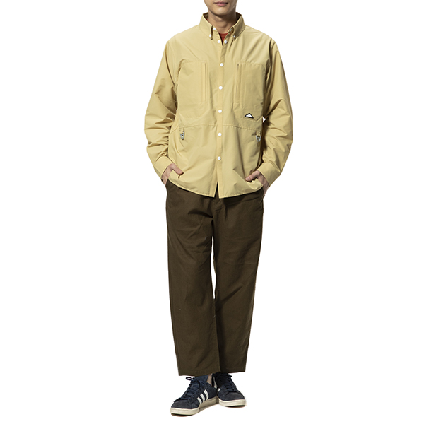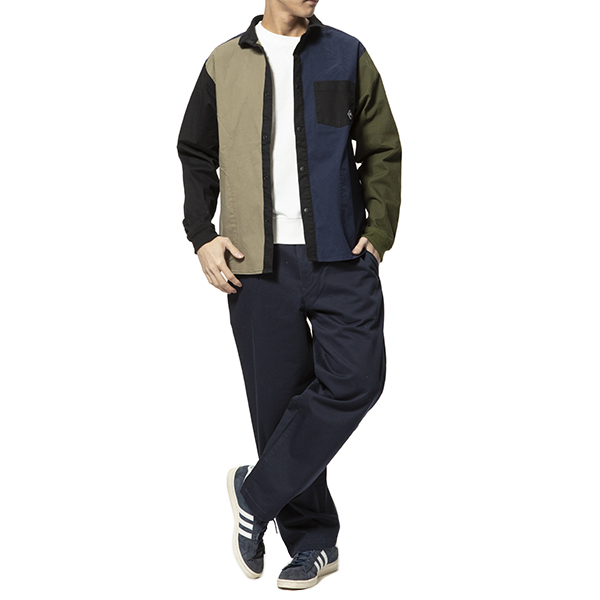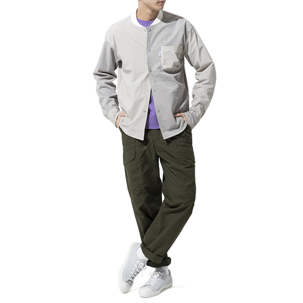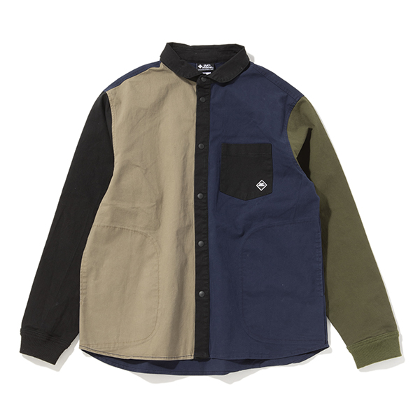 木製アイテムをメインに展開する雑貨ブランドによる、アパレルラインからの1枚。アウトドアシーンを得意としているブランドです。こちらは、左胸の部分に立体的なポケットが付いた、オーバーサイズのリブ衿シャツブルゾン。切り替えごとに微妙に色味を変えたクレイジーパターンが程よい個性を演出してくれます。