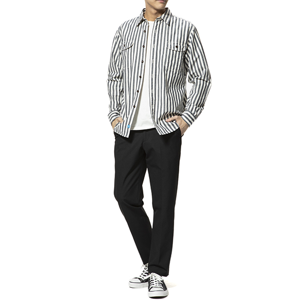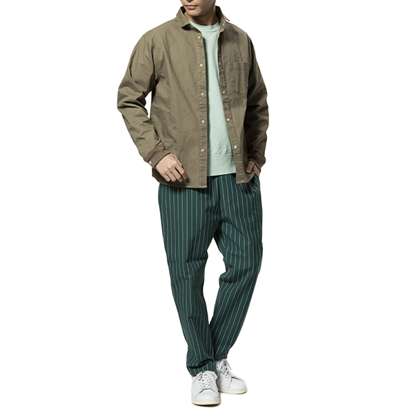 印象的なストライプをジャケットやニットのインからチラ見せしてもおしゃれにキマるのはもちろん、暖かくなってきたらシャツアウターとしても重宝しそうな一枚です!