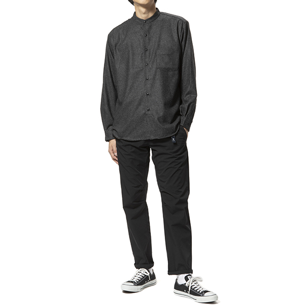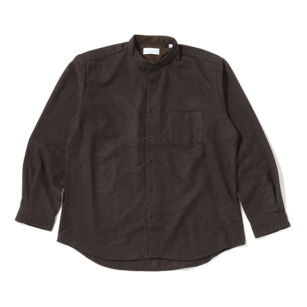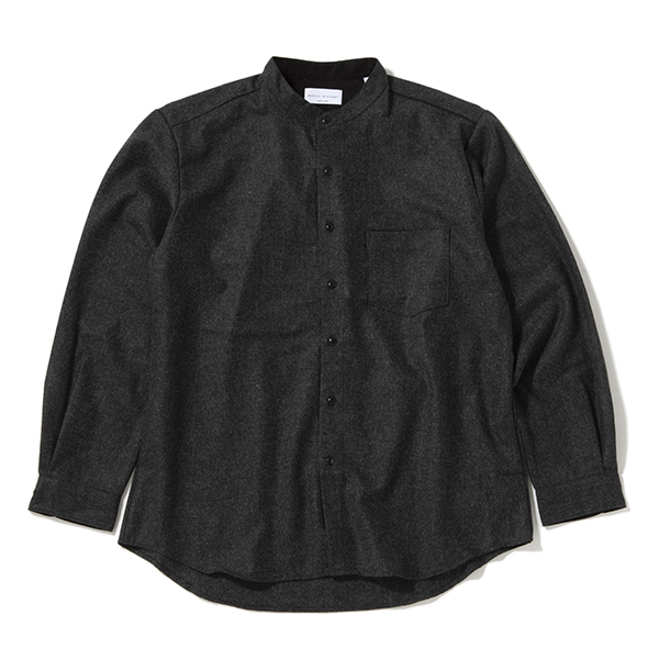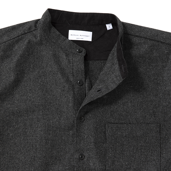 尾州ウールを使ったルーズなバンドカラーシャツ マニュアルアルファベット WOOL B/C SHT