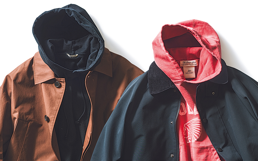 パーカ2万3000円。(オーラリー) スティル バイ ハンドのコート3万2000円。(スタイルデパートメント) ベルナール ザンスのパンツ3万6000円。(トゥモローランド)