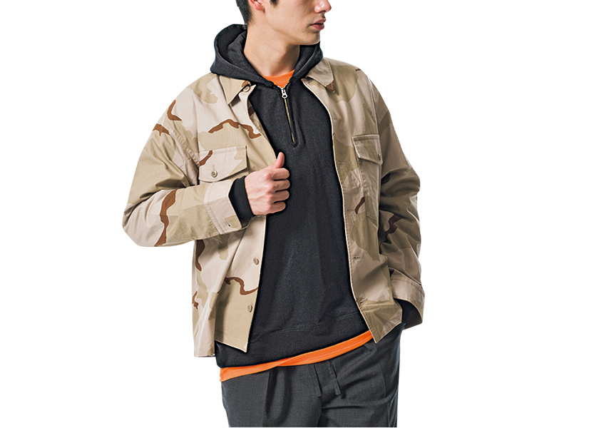 パーカ3万2000円。(マスターピースショールーム) ユニバーサルオーバーオールのブルゾン9800円。(ドリームワークス) バブアーのシャツ1万7000円。(バブアー渋谷店) ワーク ノット ワークのパンツ1万8000円。(ワーク ノット ワーク アーバンリサーチ KITTE丸の内店)