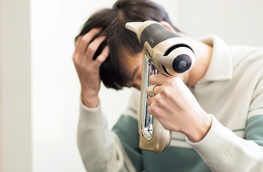 人間工学に基づいて設計されたシンプルなデザインのハンドルは、グリップ力が高く手にしっくり馴染む。風量は温風冷風とも3段階で調整可能で、髪や頭皮への負担を軽減するシステムを採用する。
