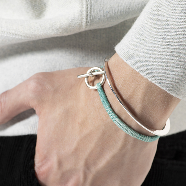 先端に同色のコードをあしらった合金のメタルブレスは、薄く軽量ながら叩き加工による表情が存在感を発揮!重ね付けも単品使いもできる2本セットで5000円とリーズナブルなので、なんなら2色両方大人買いもアリです!