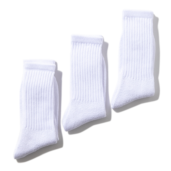 おうちカジュアルにちょうどいい3P肉厚ソックス ヘルスニット シンカーソリッドWHITE