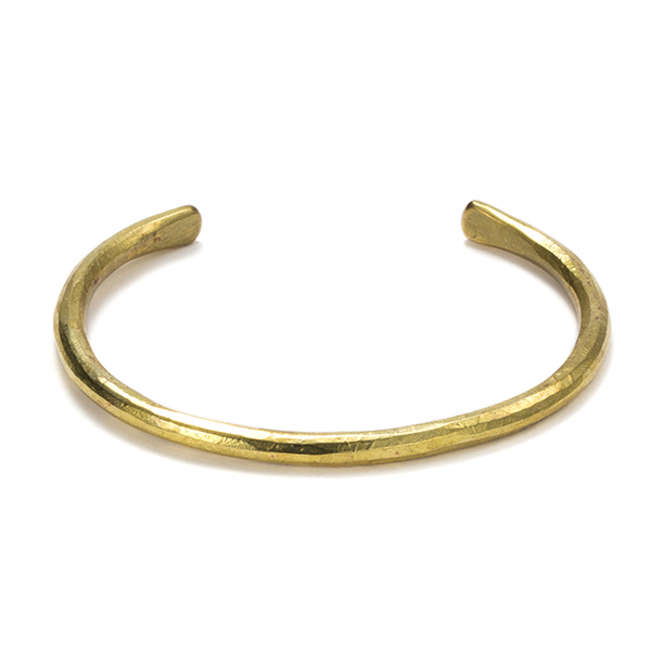 しっかりとした重みのあるバングルは、シュペリオルレイバーの作。無垢の真鍮を職人が一本ずつ丁寧に手曲げし、ナチュラルな風合いを最大限に引き出しています。ハンドメイドならではの粗野感と真鍮らしい鈍い輝きを備え、一本で着けても存在感抜群ですし、ほかのバングルやブレスレットと重ね着けしても絶妙なコントラストが手元を華やかに♪ エンドにはしっかりと刻印が入り、グッとプレミアム感をアップグレード。シンプルになりがちな夏のコーデにコクをプラスしてくれるハズさない一本となっています!