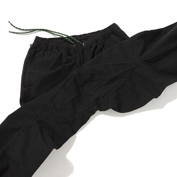 こちらは春夏の定番シリーズからの1着。股下にガゼットクロッチを備え、ウエストゴムとドローコードで楽チンを極めたパンツです。腰回りには余裕を持たせて穿き心地はゆったりさせながらも、ややテーパードを利かせることで、ジャストルーズな印象に。