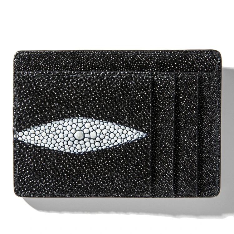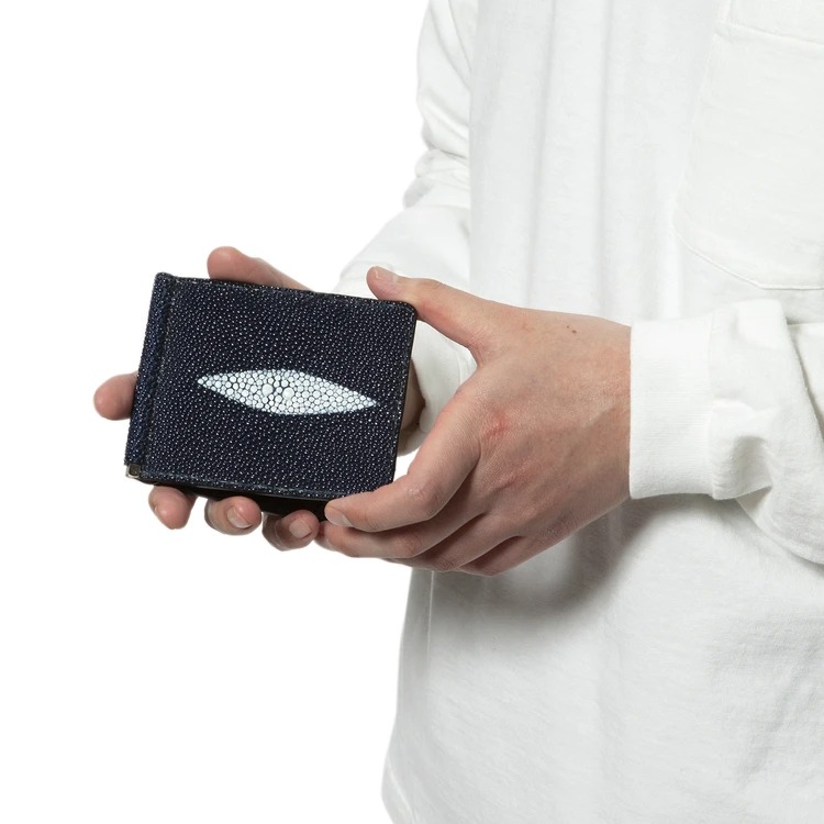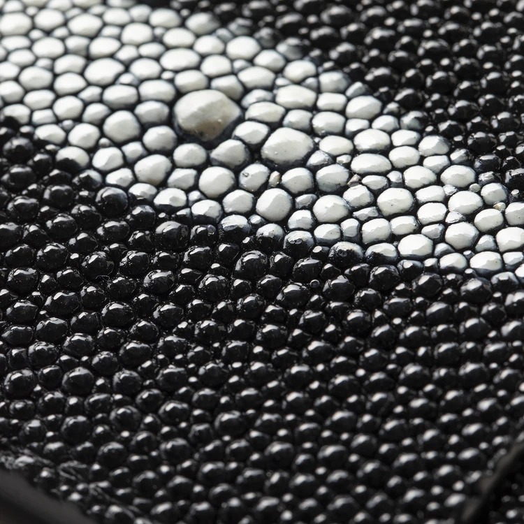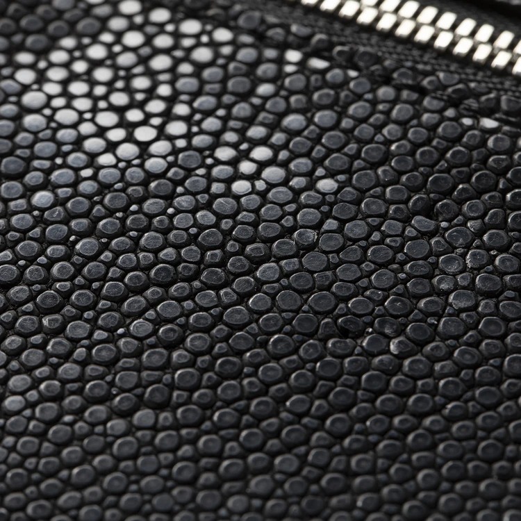 ジャーン! どうです? この圧倒的なまでにラグジュアリーな存在感。こちらは、素材にガルーシャ(エイ革)を採用しているんです! 「海の宝石」と評される高級革素材・ガルーシャの見た目はなんともエキゾチックで、まるで宝石を散りばめたかのようでしょ?