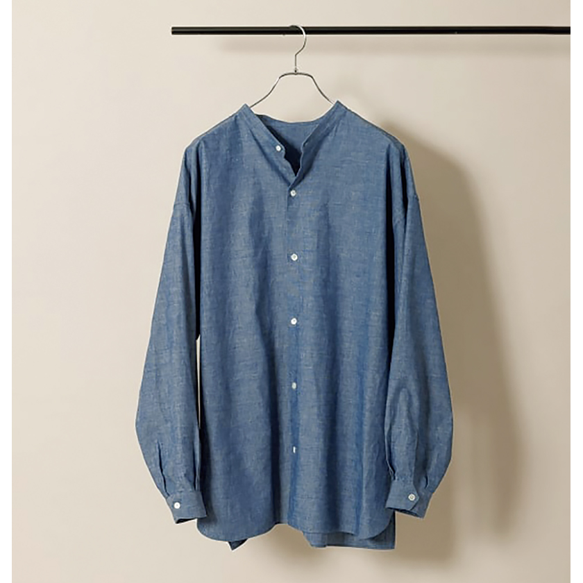 バンドカラー&ドロップショルダーと、旬の要素が詰まったシャツ。「上品な生地を使用することで、“大人でも着やすい”を作りました!」。ストライプは接触冷感、防シワなど機能生地を使用。各1万1550円。