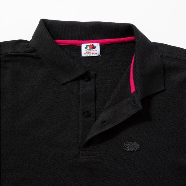 フルーツオブザルームといえばTシャツが定番ですが、じつはポロシャツは知る人ぞ知る名品。そこに目をつけたビギンは、別注を敢行! 通常モデルは袖にアイコンのフルーツワッペンが配置されるところを、思いきってワッペンとボディを同色に。そして、ポロシャツ定番の胸位置にセットして仕上げました!
