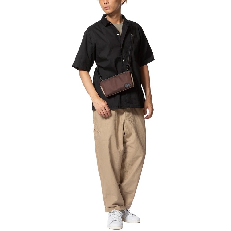 微光沢を湛えた上品なナイロン素材のサコッシュ。大人っぽい着こなしにもマッチし、幅広く活躍してくれそうでしょ?