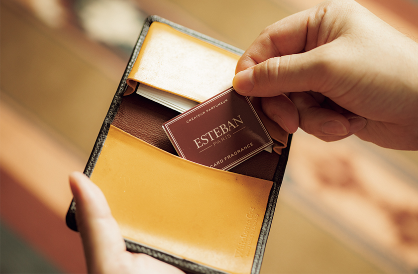 「そこで小技として使ってるのが、名刺入れにカードフレグランスを忍ばせておくこと。すると名刺に香りがうつり、名刺交換でほんのりいい香りがするんです。」