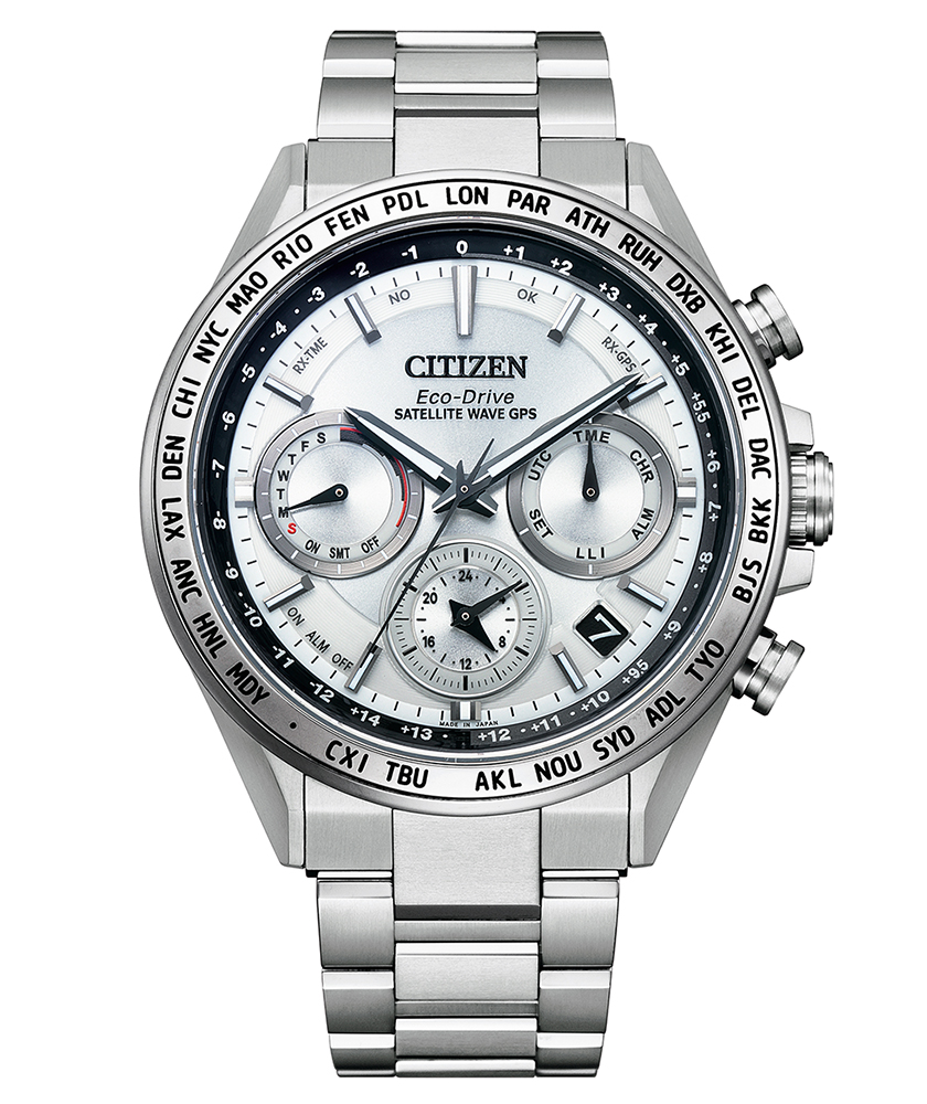 機能面では、まず、シチズン独自の光発電技術「エコ・ドライブ」搭載であるのはお約束として、GPS衛星電波を世界最速レベルの最短3秒で受信(時刻情報のみ受信の場合)し、メインタイムの時針と分針を従来の2倍の速さで動かして正確な時刻を表示します。しかも、電波を受信しながら磁気を防御しつつ、外部からの衝撃を検知して、1000分1秒という超高速で針位置を補正する「パーフェックス」(これもシチズン独自の技術!)も搭載することで、驚異的な高精度を実現しているのです。