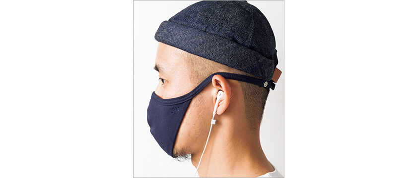 一本のストラップで後頭部で固定する、この“ラップマスク”なら耳周りの混雑を解消! 横顔もスマートに演出してくれます。