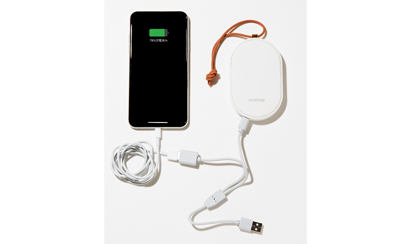 通勤や通学の帰り道、北風吹きまくりで気温急降下……なんてときに助かる充電式カイロ。スイッチオンからわずか10秒で温まる爆速仕様。また、モバイルバッテリーにもなってカイロが不要なときも邪魔にならない。W70×H122×D20mm。2200円。(mottole)