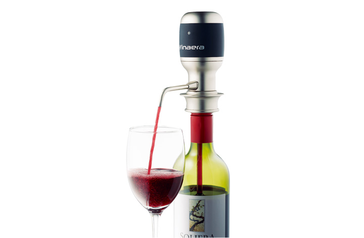 ワインに空気を含ませるエアレーションを瞬時に行いながら、グラスに注げるディスペンサー。8 年以内の若いワインや、渋みの強いブドウ種のワインでとくに効果を発揮する。空になったボトルに水を入れて吐出すればすすぎ洗いができ、お手入れも簡単だ。1万2000円。