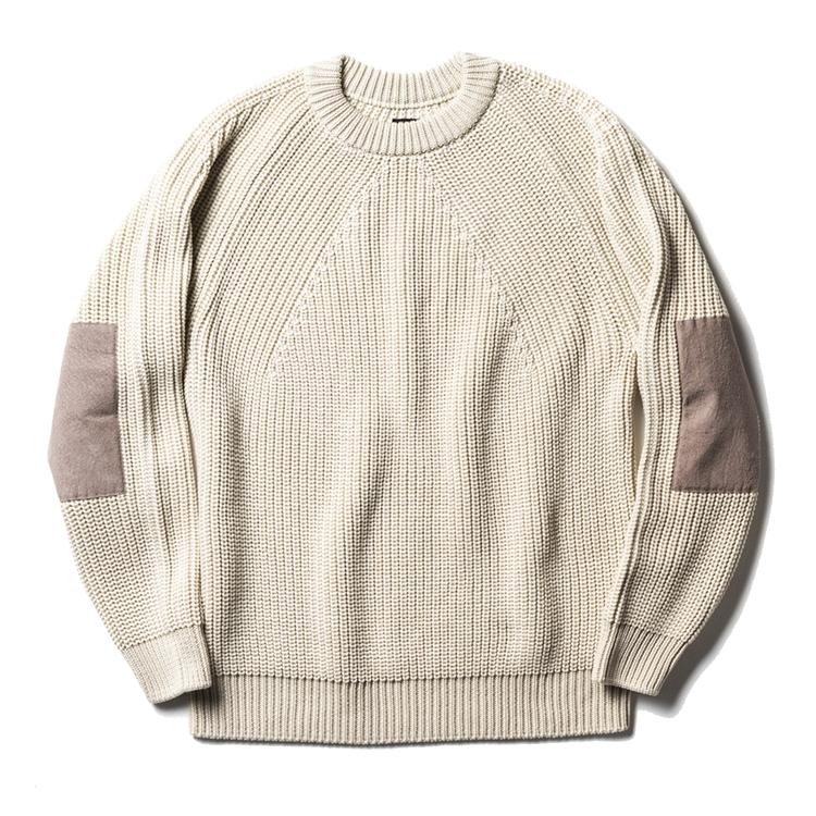 名門ニットの微差別注は、変“革”パッチをON! バトナー Begin別注 エルボーパッチ付きシグネチャークルーニット