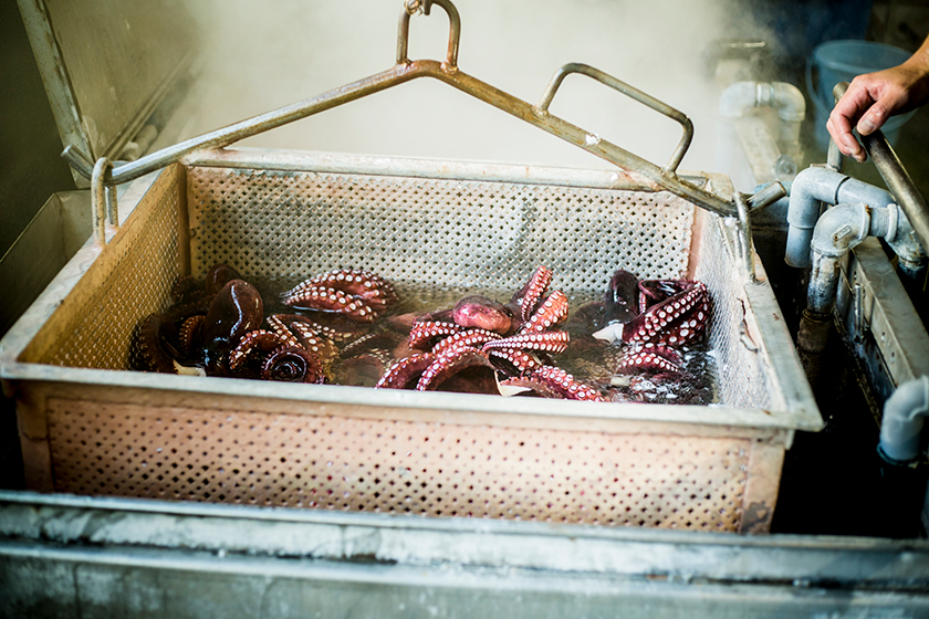 取材時は茹でを請け負う九州産のたこが茹でていた。
