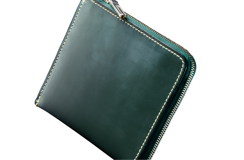 昨年福岡の名店「フレーム」のみで販売され、爆発的ヒットを記録。新色が追加されたL字ジップ財布は、外装はもちろんのこと、内装にも十八番のブライドルレザーを配した贅沢な仕様だ。W11.5×H9.5cm。2万円。