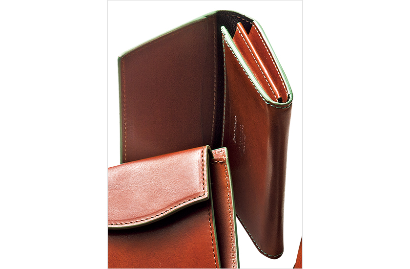 ステーショナリーなどを生産するイタリアの老舗との協業により、高い耐久性や狂いのないステッチなど、丁寧な作りを実現したシリーズ。上から時計回りに、カードケース2万4200円、キーケース1万8700円、ロングウォレット4万7300円、IDケース1万4300円、ウォレット2万8600円。