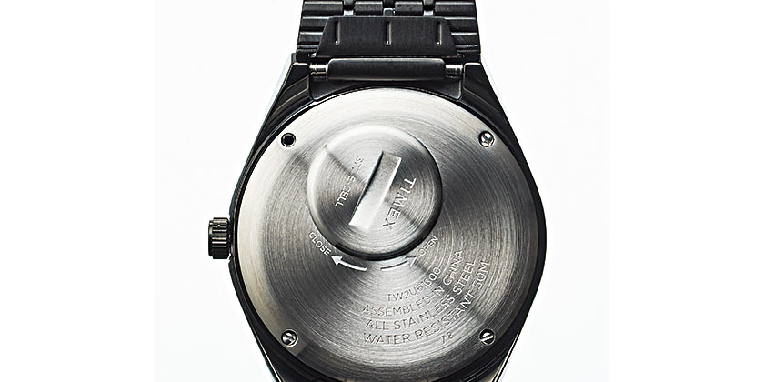 名作Qタイメックスの新色。自分で電池交換ができるハッチ付き裏蓋。4月上旬バーニーズ ニューヨーク オンラインストア先行受注開始。5月下旬一般販売開始。クォーツ。径38mm。2万4200円。