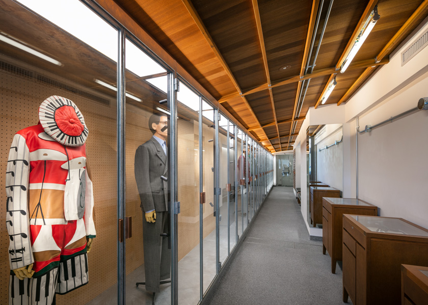 国内外でさまざまな店舗や建築を手がけるTRIPSTERが監修した同店は、長屋のような日本的な要素を取り込みつつ、米・カリフォルニアの建築家による町工場をイメージしたモダンなデザイン。アメリカを発祥とするアイビールックを日本に紹介し、それを定着させたVANヂャケットとともに誕生した歴史と、眼鏡製造の聖地、福井県の鯖江で生産し続けるメイド・イン・ジャパンへのこだわり。そのアイヴァンが辿ってきた軌跡とブランドの未来を感じさせるような空間が広がります。