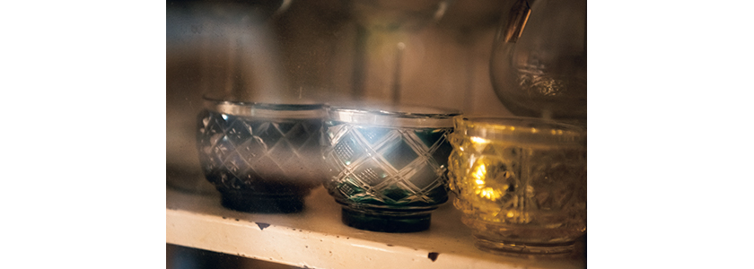 各地に伝わる焼物を広く愛用している和田さん。なんと洗面台のボウルまで、懇意にしている小鹿田焼の作家さんに特注! 薩摩切子のグラス類も山ほど収集している他、海外の工芸品まで広く網羅している、まさに民藝ハウス!