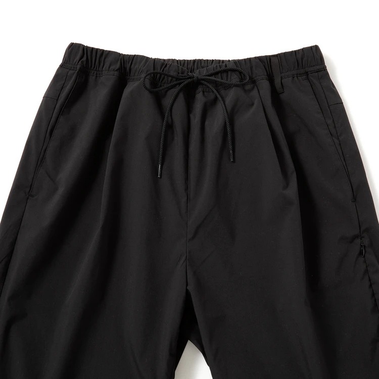 ウエストにはドローコードを配しているため、ウエストサイズも丈の長さもジャストサイズに合わせることが可能。スマホサイズのコンシールジッパーポケットや鍵ループ、フロントプリーツなど、使い勝手を向上するディテールも盛りだくさんです。