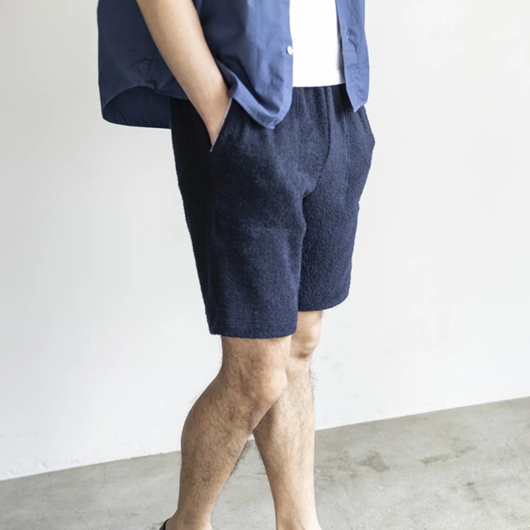 「極上のタオルに包まれたみたい」と評判な両面パイルを使用したショートパンツ。理由は表地も裏地もフワッフワで、尚且つキックバック力抜群のストレッチを獲得した生地だから。吸水速乾性にも優れ、汗っかきな季節でも一日中快適な穿き心地が持続します。