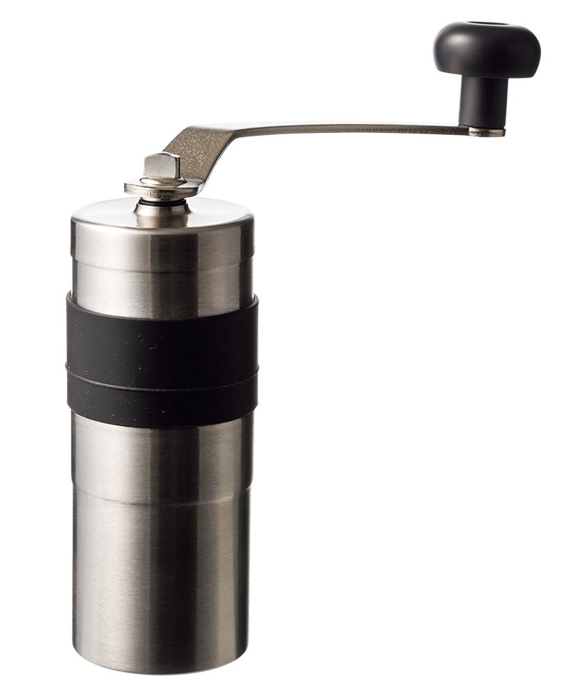 一度に20gの豆が挽ける、コンパクトなミル。分解・組み立てが容易で、刃や部品を丸洗いできるのも大きな魅力だ。粒度は平均37ミクロン単位で細かく設定できる。日本製。Φ4.9×H19.2cm。6930円(ジャパンポーレックス)
