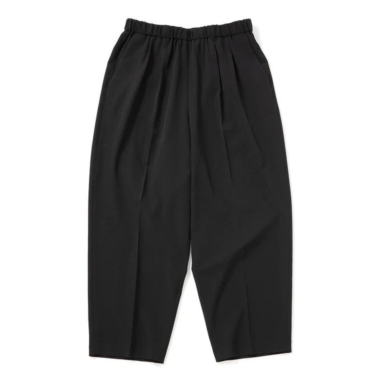 美麗なシルエットの秘密はセンタークリースにアリ。腰回り、腿回りはゆったりしているにも関わらず、膝下から細くなるシルエットなのですっきりとした印象を与えることができる本モデル。加えて前述のクリースのおかげで、きちんとした感じに穿きこなすことが可能です。トップスを選ばず、どのアイテムとも好相性を成すのでクローゼットに1本加えておきたいパンツではないかと。
