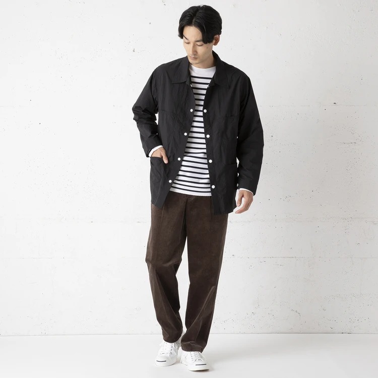 ほっこりしたコーデュロイ生地の表情にも関わらずストレッチ性の高さが抜群なので、穿き心地が極上。タックが入ることでゆったりしたシルエットながら、足首にかけてシャープさが出ているので美麗さも◎。