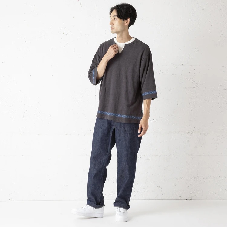 秋ならヘンプが混ざったユルいトップスと合わせて、素材の違いを楽しむスタイルがオススメ。スニーカーと合わせても絵になりますが、レザーシューズで足元を締めても良さそうです。>>>詳しくはこちら