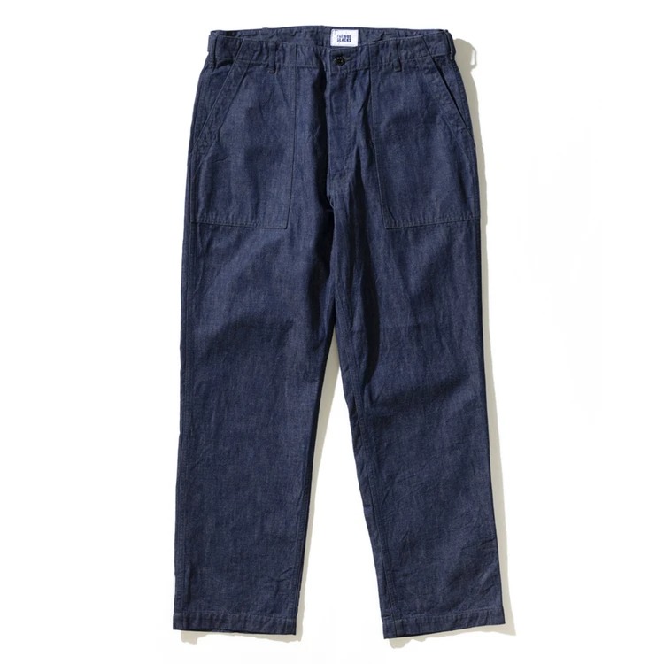 生地がデニムといっても、硬くて分厚いアメカジ仕様ではないから気軽に足を通しやすいのもポイント。ベイカー由来の縦に長い長方形のポケットもデザインのアクセントに。
