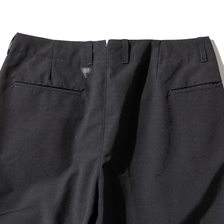最大の特徴はサラッとしたドライタッチが心地いい「ウェザークロス」ですが、この生地には撥水加工も施され、ちょっとの雨なら余裕なんです。秋雨前線が活発化するこれからの季節に頼もしいパンツなわけですが、じつはそのデザインソースがとてもユニーク。というのも、世田谷生まれのデザイナー小野寺さんが学生時代に穿いた“学生服”をイメージしてアップデートしたアイテムなのです。