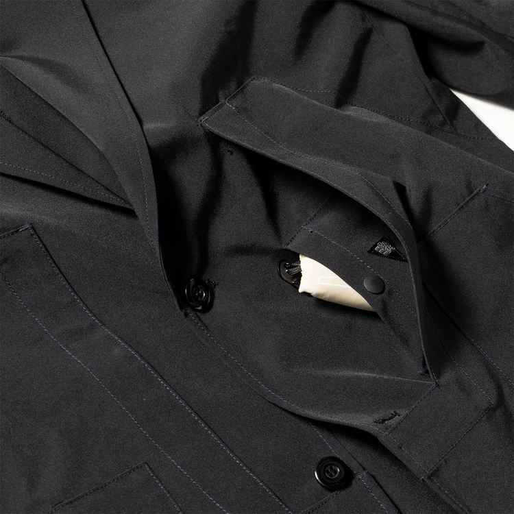 往年のハンティングジャケットをモチーフに、左右に大型ポケットを装備。その内側には……な、なんとエコバッグ専用の隠しポケットが! 誰だって仕事帰りに買い物を頼まれることってあるじゃない? そんなときにサッとエコバッグを取り出して家族のために買い物しちゃうぜ、みたいな。昔は「一狩りいこうぜ」といろいろ狩ってたけど(意味深)、今は食材をハント。そんな紳士に贈るシティハンタージャケットです。