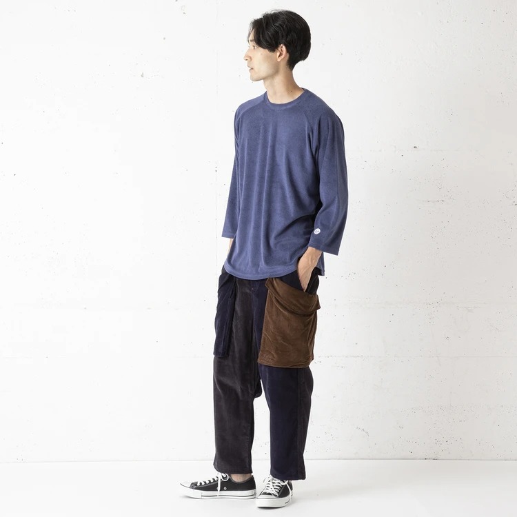 ウエストには取り回しがイージーなウェイビングベルト、左サイドには同ブランドを象徴するバーティカルジップポケット、股下には180度開脚可能なガゼットクロッチ、とディテールも盛り沢山な内容で作成されたイージーパンツ。シルエットも折り紙付きなので、穿き慣れた一本を新調するなら、コーデュロイってマジで狙い目です。