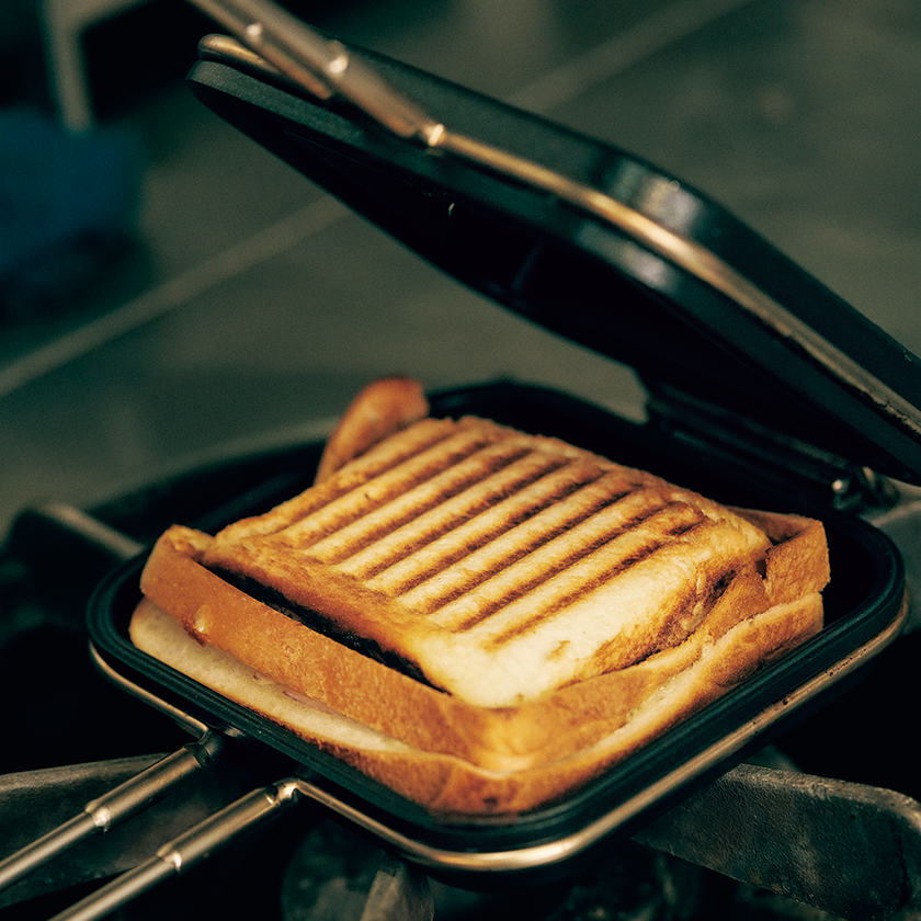 朝食や店のまかないで使うホットサンドメーカーで、今までで一番テンションが上がったのが「家事問屋」のホットパンです。これは溝が画期的。内側に溝がある二重構造で食パンの縁がぐるりとプレスされる仕組みだから、パンパンに具を入れても中身がはみ出しにくい。