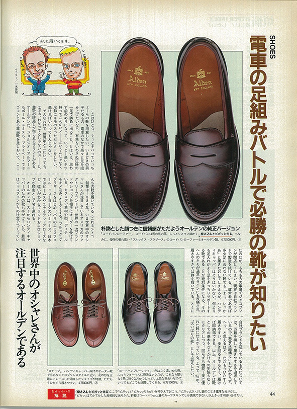 手前ミソでも言っちゃいますが、Beginは数多のブームやトレンドの起爆剤となってきたと自信があります(笑)。とくにエポックだったのが1991年に初めて紹介した『コードバン』のオールデン。当時の誌面に異様な熱気をもたらし、”いいモノの本質を伝える”という本誌の性格形成にも一役買った大事件でした。皆さんの”今” の価値基準にも大きな影響を与えていると思うのですが、いかがでしょ?