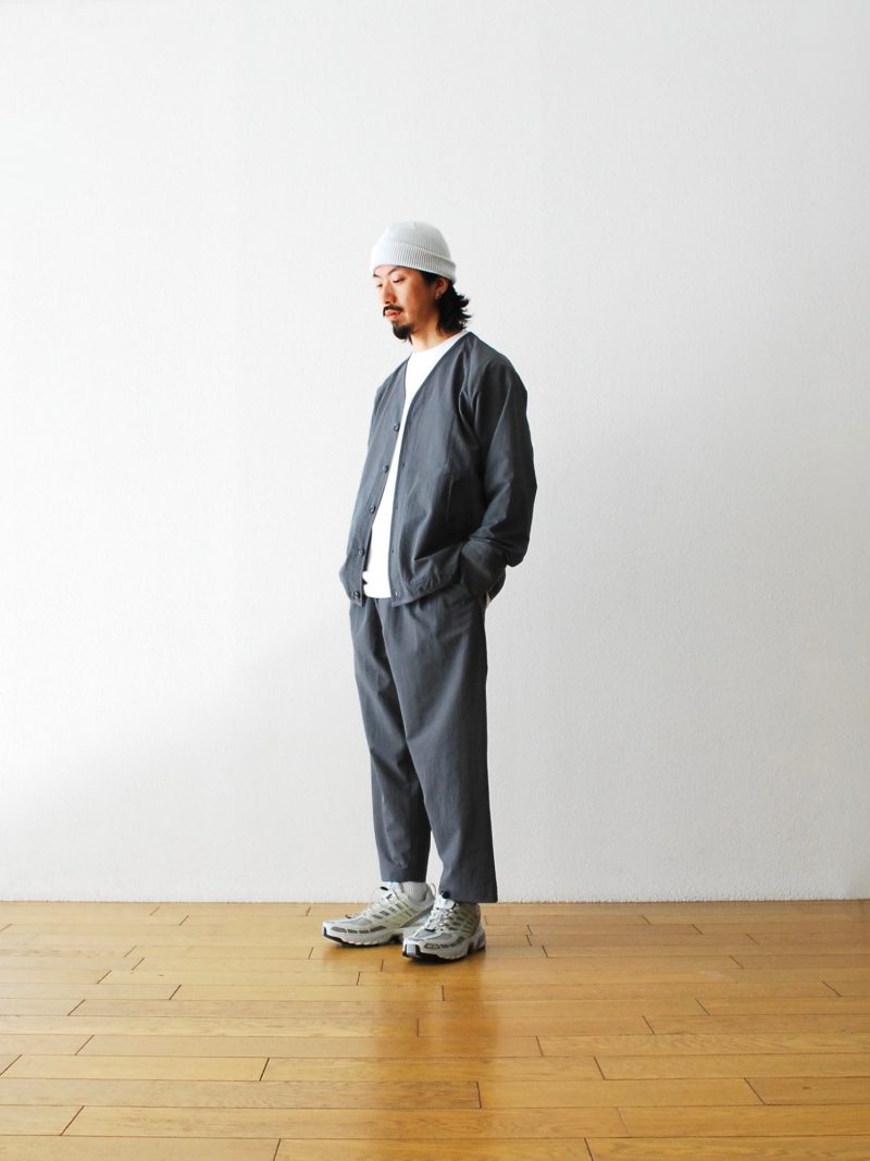 単体での着用も◎ですが、トップス、ボトムスとも同素材、同カラーのアイテムゆえ、抜け感のあるセットアップでの着用がオススメ!