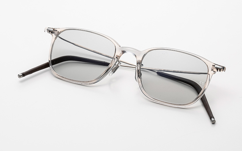 端整なボストン形のフロントには、高密度で変形が少なく、経年変化しにくい特殊なプラスチック「ハイカウントアセテート」を使用。細身ながら耐久性良好で、軽やかな掛け心地が味わえる。