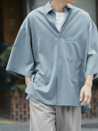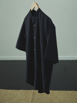 ウォッシャブルウールショートスリーブバンドカラーシャツ