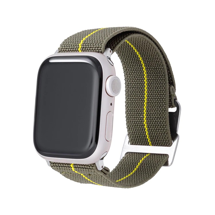 バンドは先端を通す定革や遊革がなく、スムーズに着脱できるループタイプ。肌に触れる裏生地には撥水加工を施したエコレザーを使用しており、着け心地も柔らか。