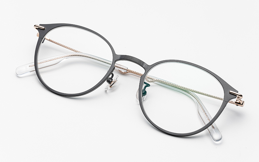 フレームを手掛けているのは、福井県鯖江市にあるオールチタンフレーム製造のパイオニア的なファクトリー。その高度な技術を駆使した、精巧な作りが生み出す佇まいの美しさが秀逸だ。さらにイオンプレーティングで表面処理を施すことで、耐久性にも秀でている。