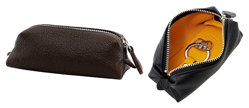 小さく、フックラとした姿がラブリーなコレは、近年、大型化するキーに対応すべく開発されたポーチ形のキーホルダー。ロゴ入りの大型リングと10mm径の小リング3個を組み合わせたことで、たとえばエンジンキーではシリンダーキーはもちろん、スマートキーも収納が可能だ。W11.5×H5×D4cm。各1万8700円(トップ写真の手前右も)。