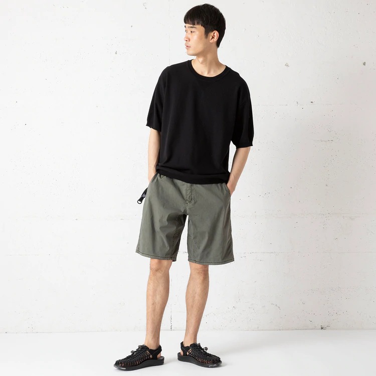 フルレングス、ハンパ丈とくれば、ショーツももちろん展開中! シルエットは程よくゆとりをもたせたワタリと緩やかにテーパードさせた膝上丈。ピグメント加工の色合いも相まって、子供っぽくなることを気にせず穿けます。トップスに無地を選んでもニュアンスのある着こなしになりますし、大人のアウトドアコーデが簡単に叶います! キャンプやフェスなどに、ぜひ〜♪>>>詳しくはこちら