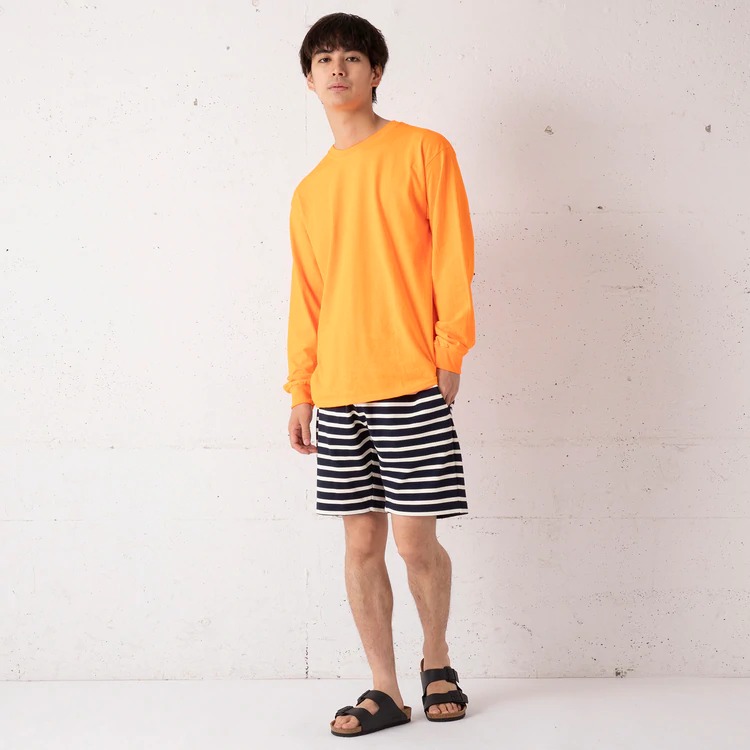 着丈は膝上で、Tシャツとは対照的にスッキリ見え。スウェットショーツにありがちなダラっとした印象はありません。セットアップではもちろん、今どきなゆるロンTとも好相性なので単品使いするのもアリですよ! スタンダードな4色展開。>>>詳しくはこちら