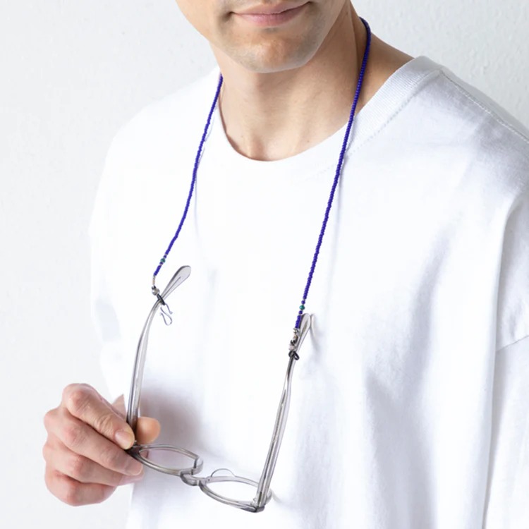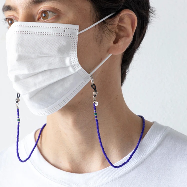 サングラスとマスクは着こなしの一部。そこでビギンがサンクに別注したのが、こちらの3wayネックレスです。着用画像をご覧いただければ一目瞭然ですが、ネックレス⇔グラスホルダー⇔マスクホルダーの洒脱な新・3wayネックレスは、新時代の定番となるポテンシャルが激高!